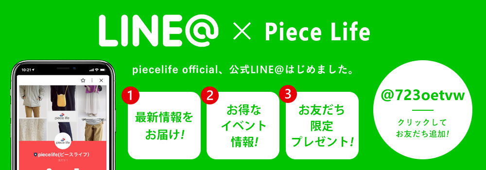 - Piece Life 本店WEBストアが本日より、オープン致しました!!