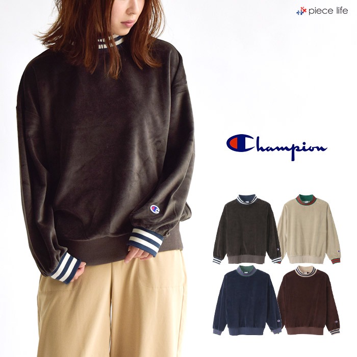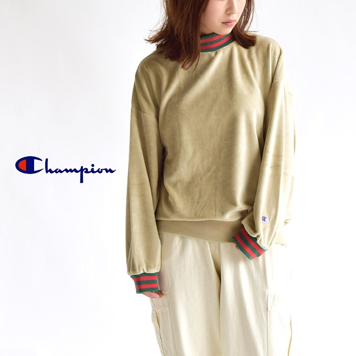 【Champion】ウィメンズ ラインリブクルーネックシャツ