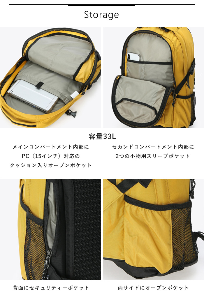| 素材 | ●010,326,464カラー:420D HD OX(ナイロン100%) x 420D Nail Head(ナイロン100%) ●015カラー:600D OX(ポリエステル100%) x 420D Nail Head(ナイロン100%) |