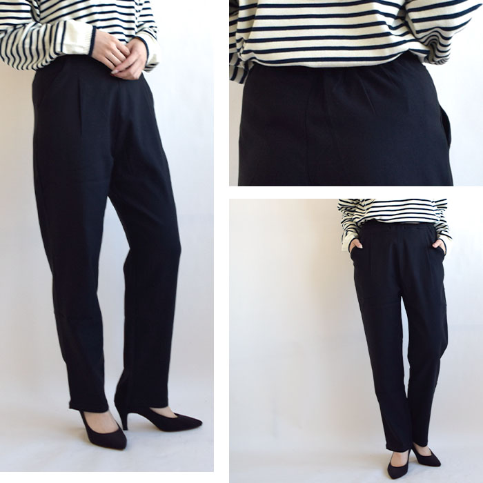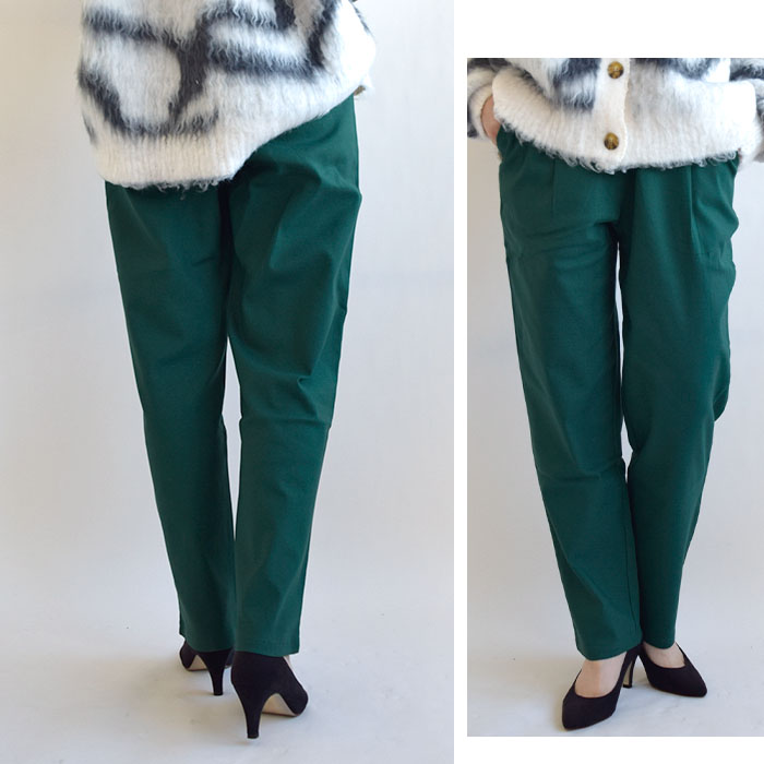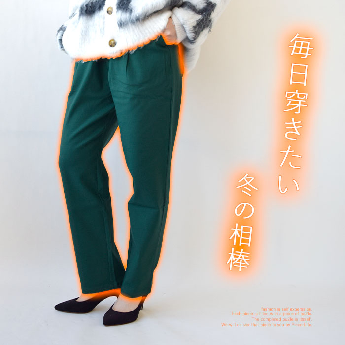 裏起毛仕様で、寒い季節に重宝すること間違いなしのテーパードパンツ。