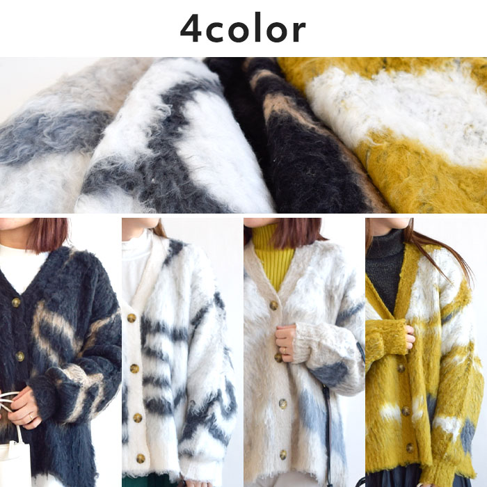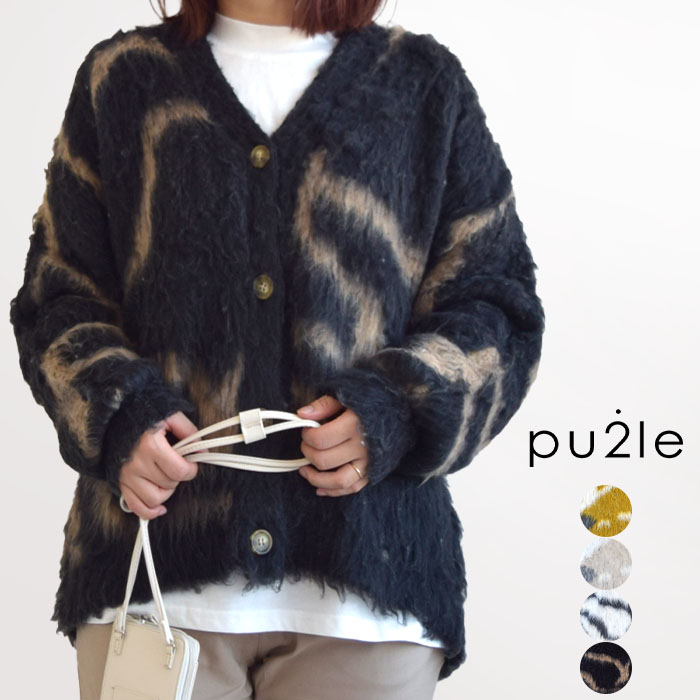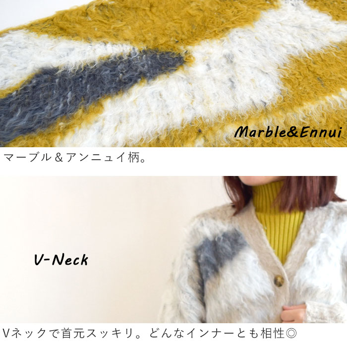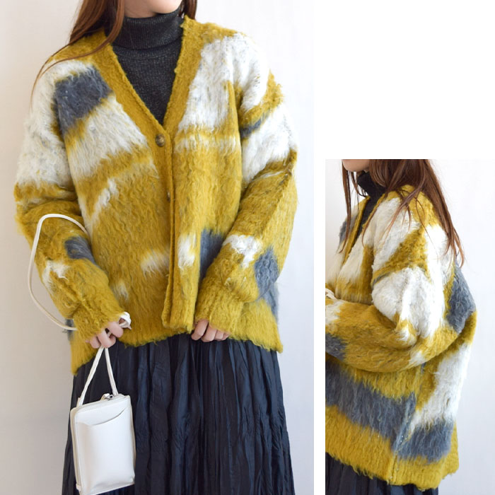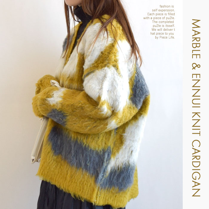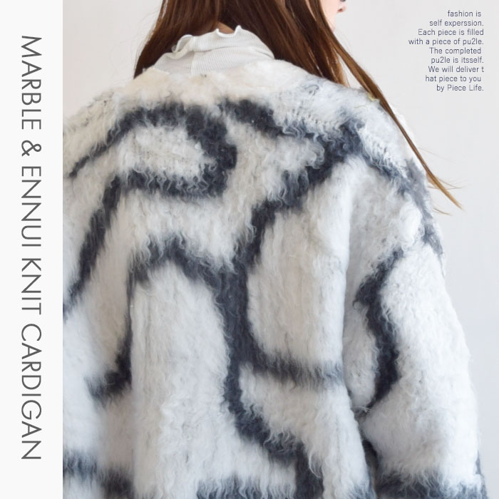 【pu2le】モヘア マーブル アンニュイ ニットカーディガン