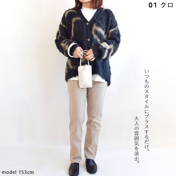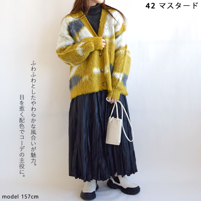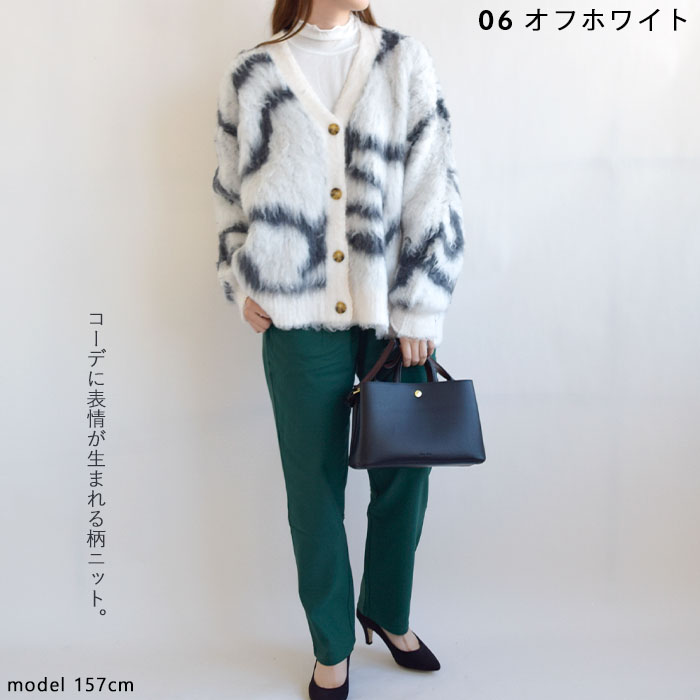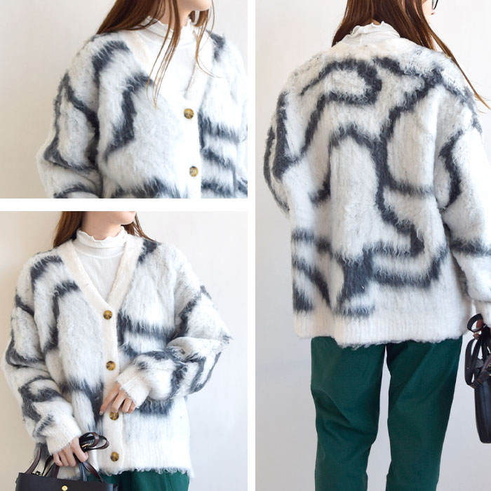 商品説明 程よい個性でお洒落を格上げ!モード感漂う大胆なマーブル模様のオシャレなカーディガン。