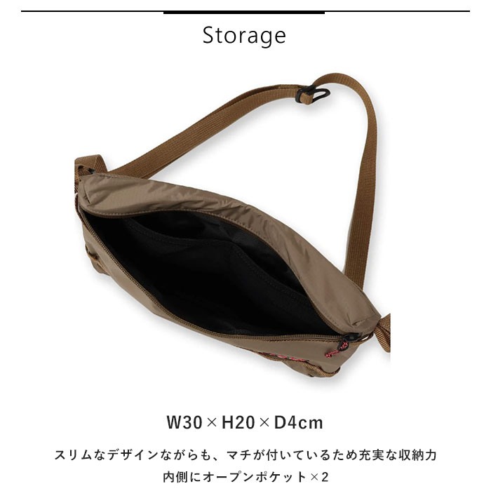 防水透湿性素材を使用しているので、アウトドアライフではもちろんのこと軽いアクティビティーでも使いやすく、どんなコーディネートにも合わせやすいトーンカラーで日常でも活躍できるサコッシュになります。