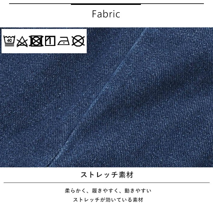 | 素材 | ストレッチインレイ/デニムニット 【ブルー・ネイビーブルー】綿57% ポリエステル37% ポリウレタン6% 【ブルー・ネイビーブルー以外】綿95% ポリウレタン5% |