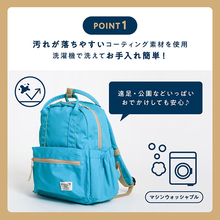 1.洗濯機で洗えてお手入れ簡単!遠足や公園など、いっぱいおでかけしても安心◎