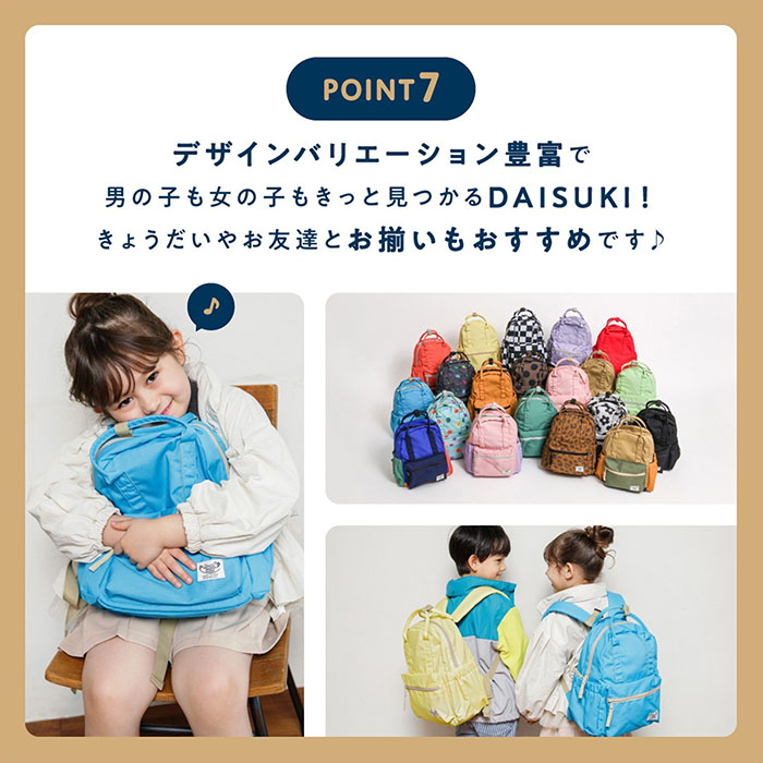 | 商品説明 | DAISUKIリュックってどんなの?? おすすめポイントをご紹介! 1.洗濯機で洗えてお手入れ簡単!遠足や公園など、いっぱいおでかけしても安心◎ 豊富なサイズ展開で、お子さまから大人までリンクで持てちゃう! |