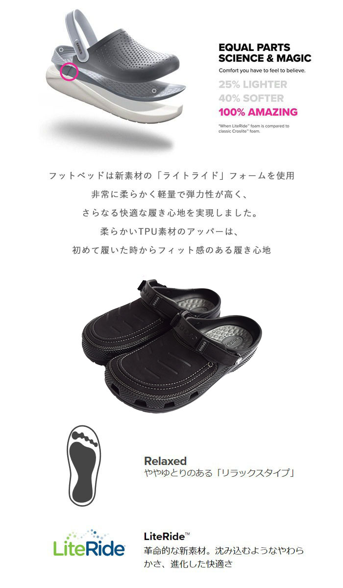 『Walk in comfort, Wear in style』2002年11月のファーストモデルの発売以来、クロックスは商品ラインを拡大し続け、年間を通じてより幅広いシーンに対応できるバリエーションを提案しております。ワクワクするようなカラーと革新的なデザインを融合したライフスタイルブランドとして、新たな快適性、機能性、スタイルを提供させて頂くショップです。