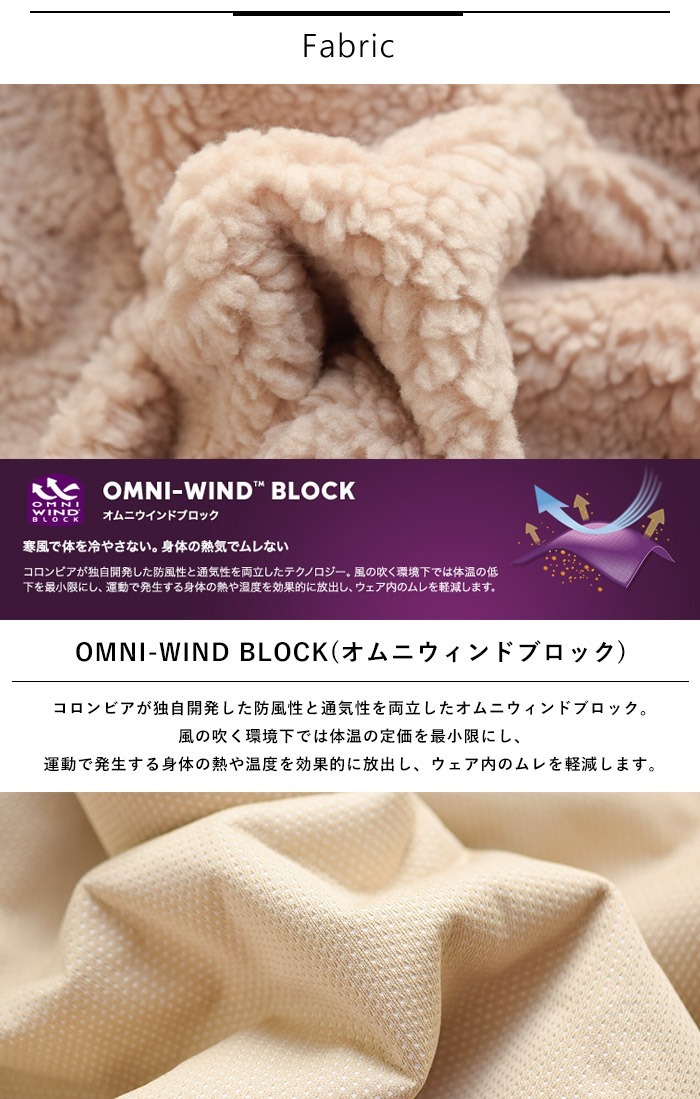 コロンビアが独自開発した、防風性と通気性の2つの機能を両立した「オムニウインドブロック」を採用。