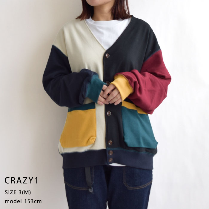 季節の変わり目に重宝するリラックスシルエットのマチポケット付きコットンカーディガン。1着は持っておきたいアイテム。インパクト抜群のCRAZY柄。