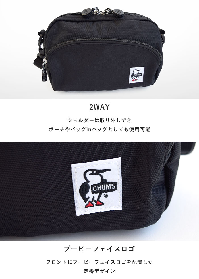 チャムス定番のミニショルダーバッグです。 ショルダーストラップを取り外してポーチとしても使用可能です。 |