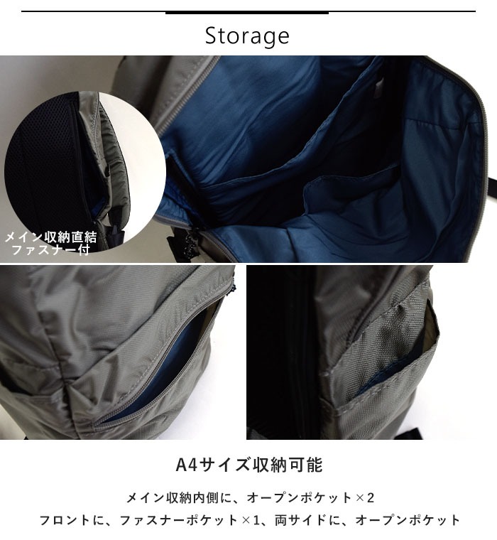 メイン収納はマチが大きめなので、ランチボックスなどもしっかり入る!
