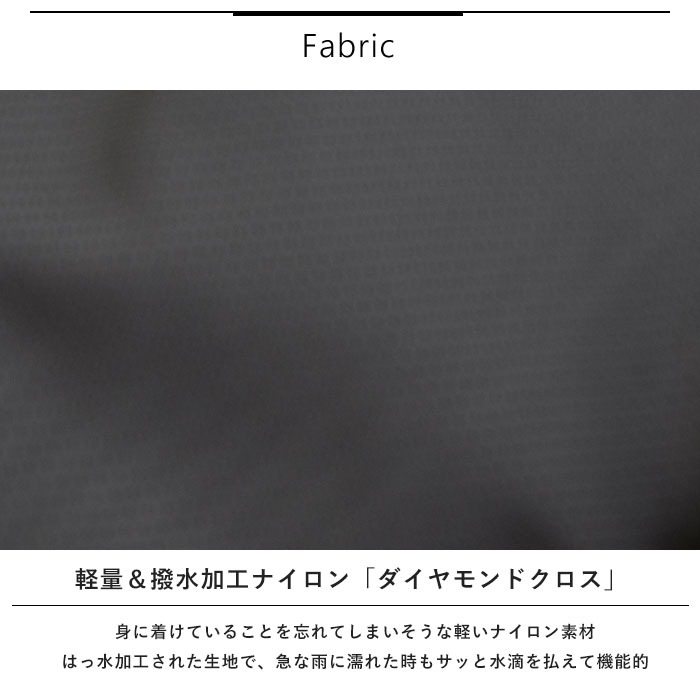 はっ水加工された生地で、急な雨に濡れた時もサッと水滴を払えて機能的。