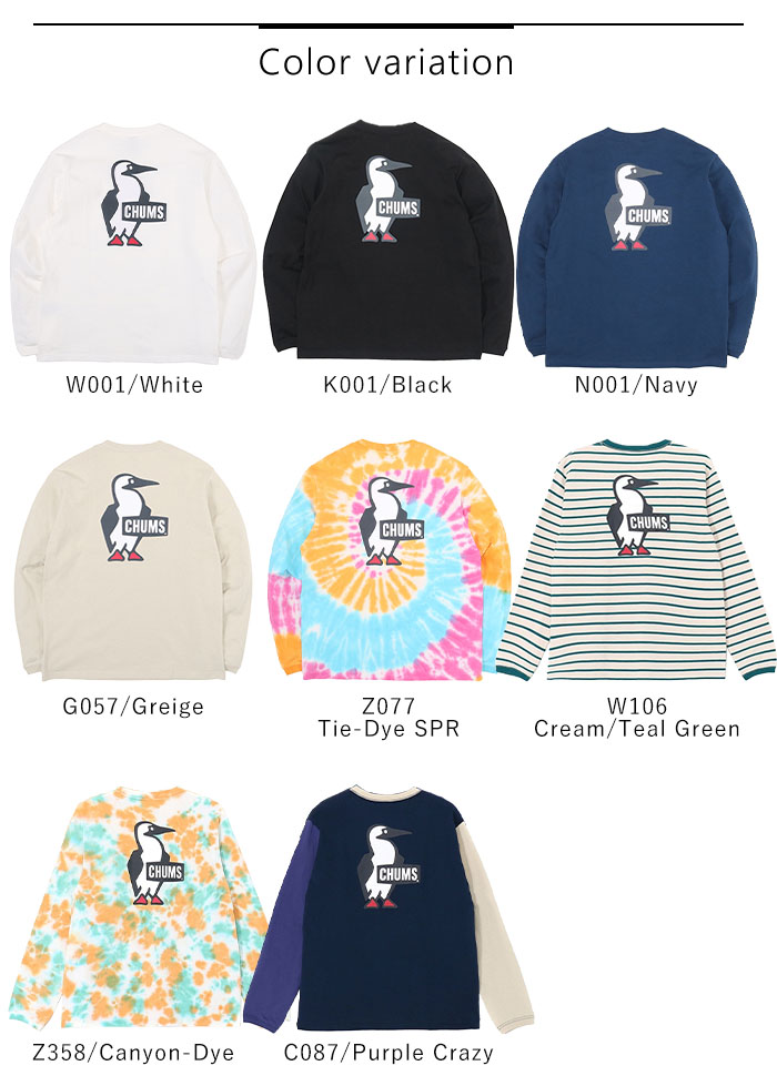| 商品説明 | インパクト抜群のバックプリントが 目を引くロングスリーブTシャツ。 程よくゆとりのあるボックスシルエット。 胸元にワンポイントでCHUMSロゴ刺繍を配し フロントがシンプルなので着まわしやすく 大人サイズの展開もあるので、親子でおそろいコーデもおすすめ◎ |