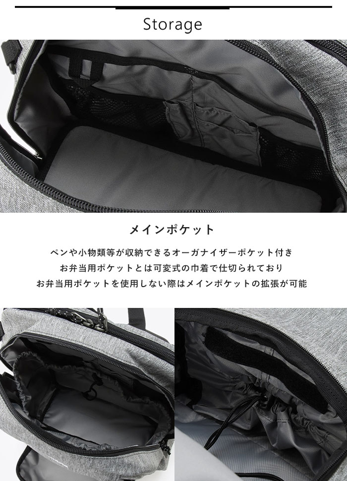 お弁当専用のコンパートメントを持ったシンプルで実用的なバックパック。