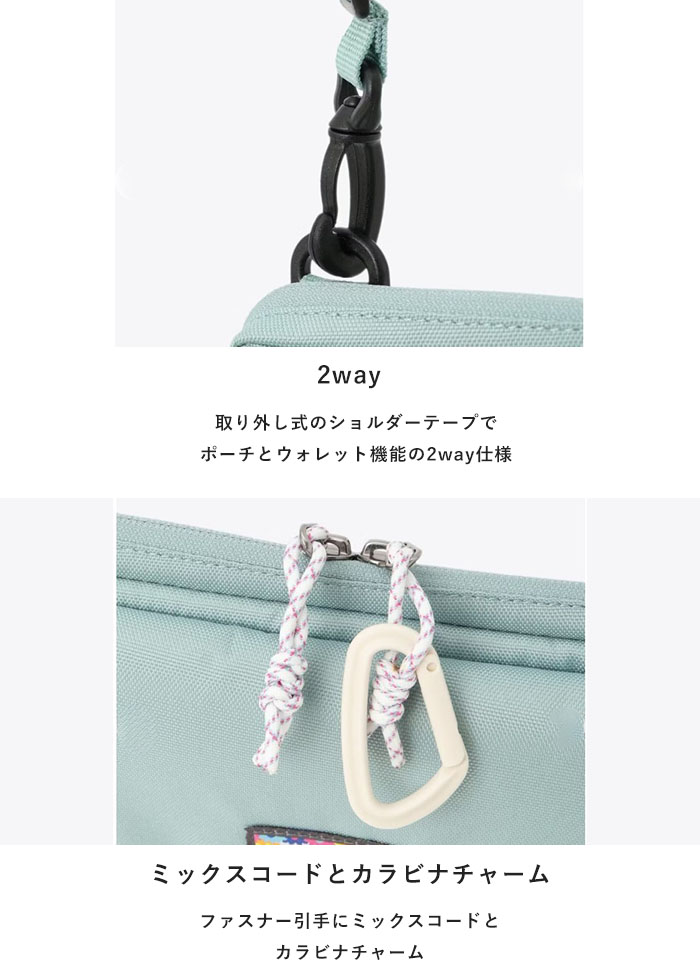 | 商品説明 | トラベルや普段使いに便利なショルダーウォレット ・コロンビア独自のはっ水(撥水)機能「オムニシールド」 ・取り外し式のショルダーテープで、ポーチとウォレット機能の2way仕様 ・メインコンパートメント内部にスリーブポケット ・ファスナー引手にミックスコードとカラビナチャーム ・フロントポケット内部は、お出かけに必須な収納力を備えたデザイン |