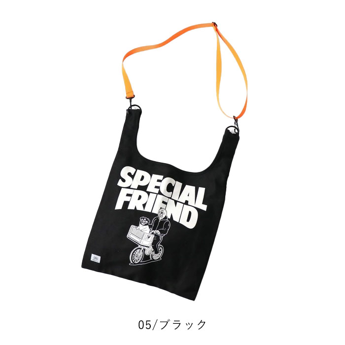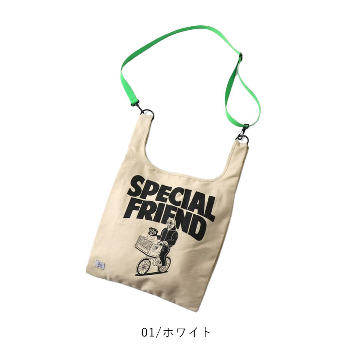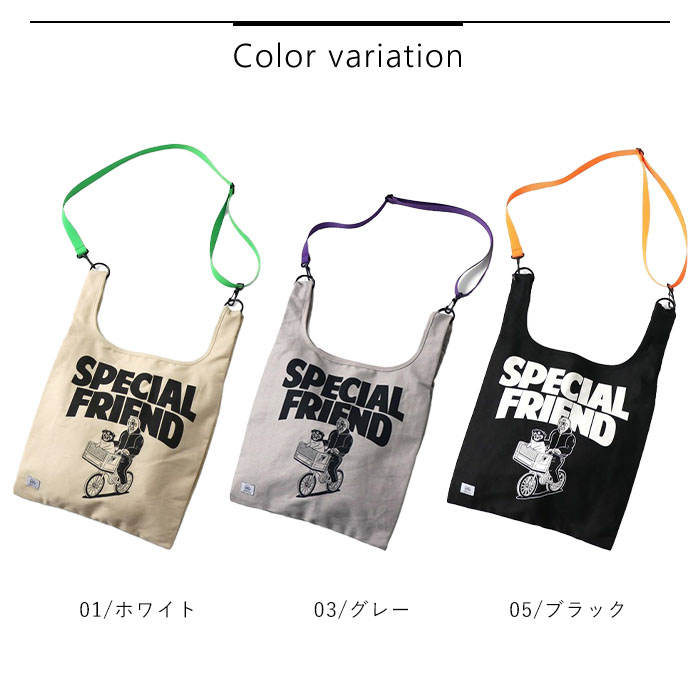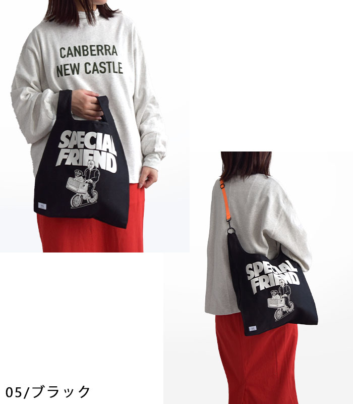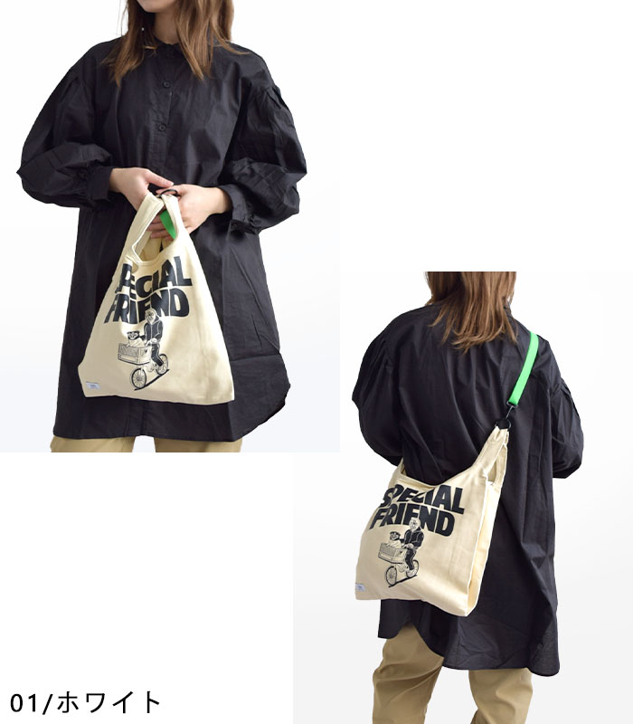キャンバス素材をつかったトートバッグに、ポップなカラーの付属ショルダーを付ければ、ショルダーバッグに!