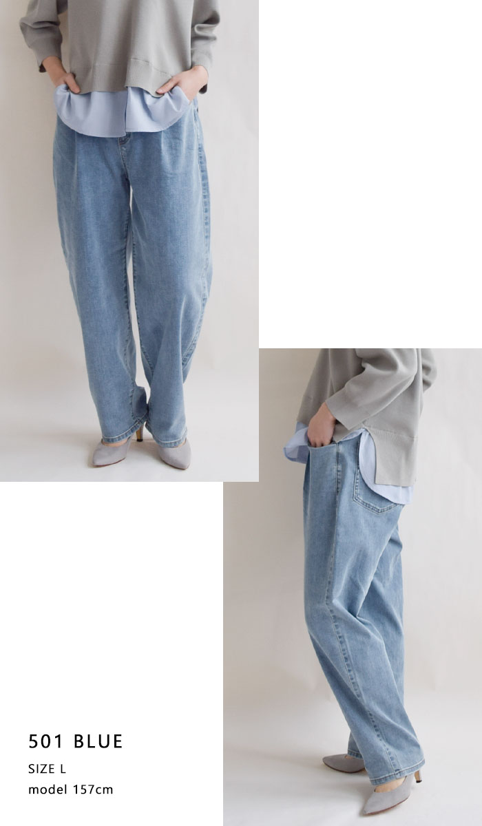 | syouhnn | デニムは暑くて夏は穿きたくない…という方におすすめな軽くて涼しいデニムです。 フロントタックをとり腰回りにボリュームを持たせ立体的なカーブラインを強調しています。 ストレッチ性があるのでノンストレスな着心地。 ONEWASHは濃色のデニムに見えて色落ちしにくい素材です。 |