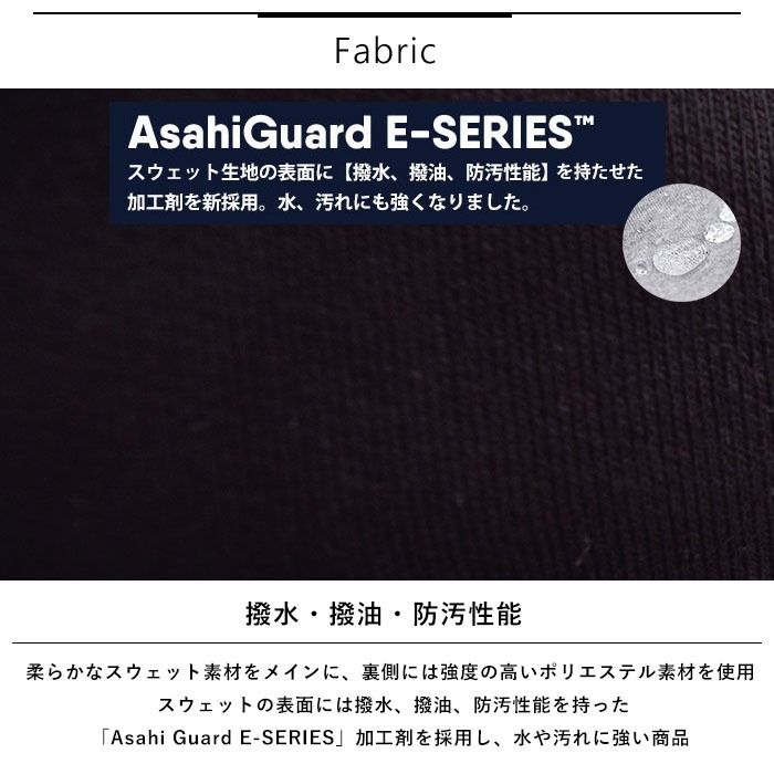 生地の表面に撥水、撥油、防汚性能を持った「Asahi Guard E-SERIES」加工剤を採用し、
