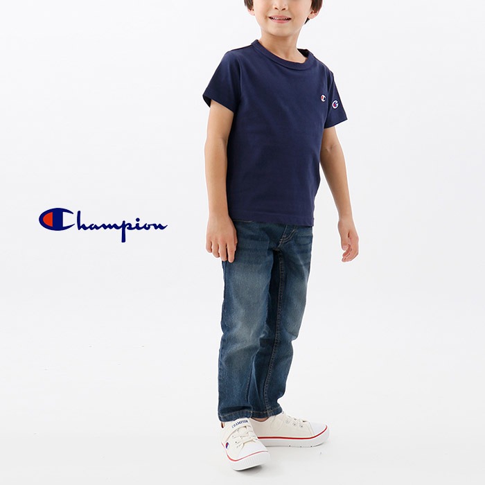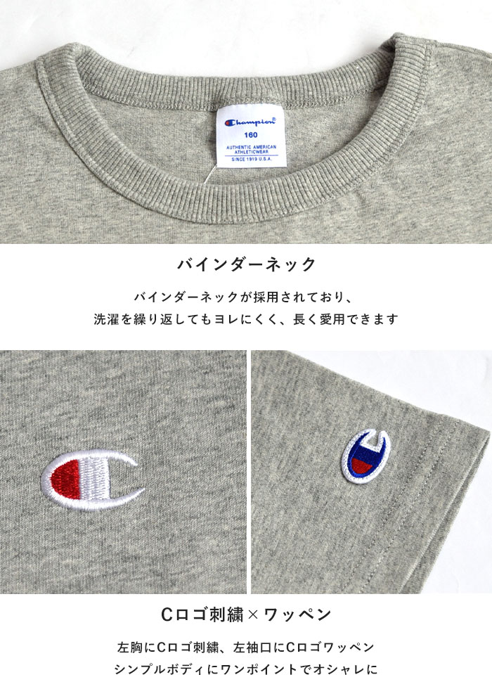 大人から子供まで人気の高い、定番のチャンピオンCマーク刺繍のシンプルな半袖Tシャツ。