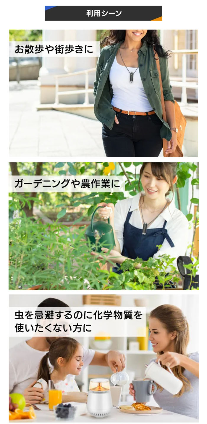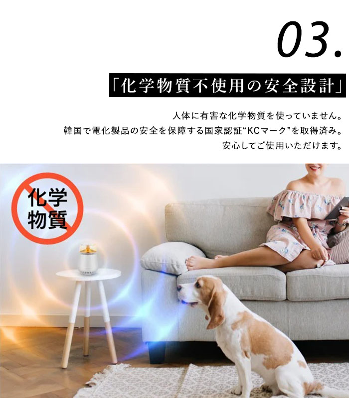 虫が嫌がる2種類の特殊超音波を発射。化学薬品を一切使わないから体にも無害。