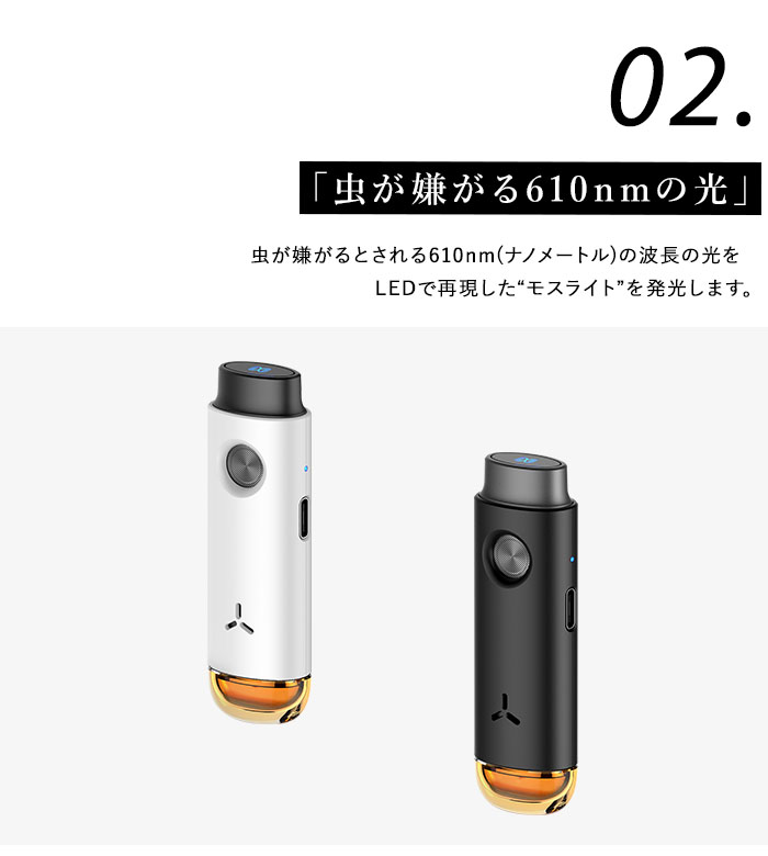 虫が嫌がる光の波長をLEDで再現した『モスライト』を発光。