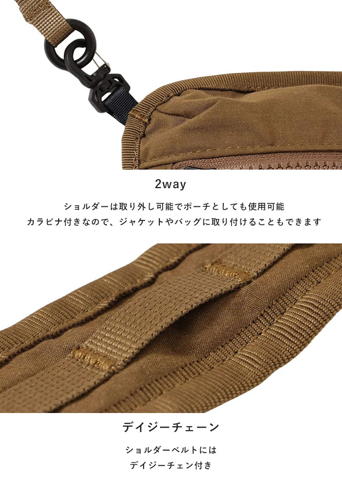 このヒノックシリーズのサコッシュは、ジャケットやバッグとのジョイント機能、難燃性や耐久性など、アウトドアライフや日常使いにおいて様々なシーンで活躍できるアイテムです。