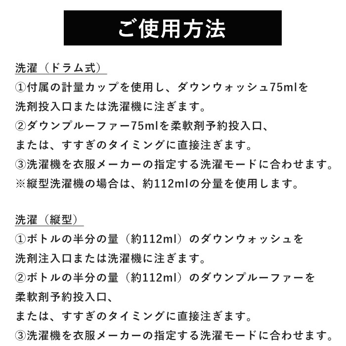 | 適応素材 | ダウン製品全般 |