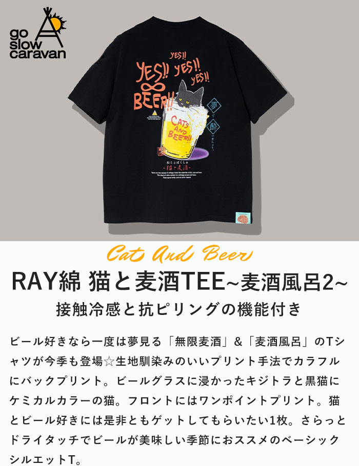 【go slow caravan】RAY綿 猫と麦酒TEE~麦酒風呂2~