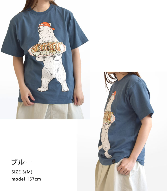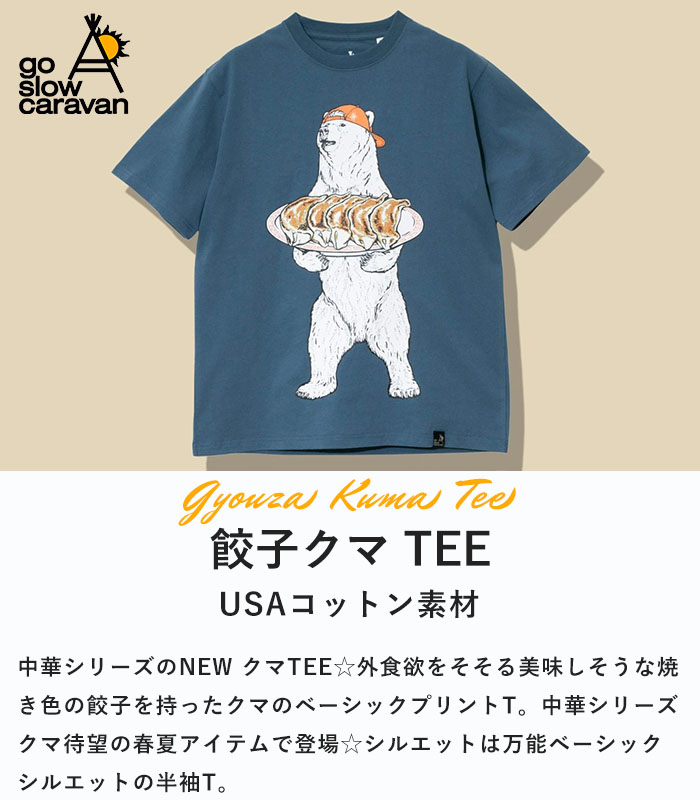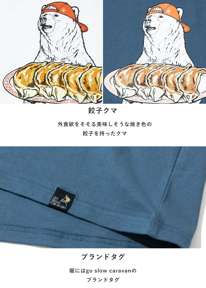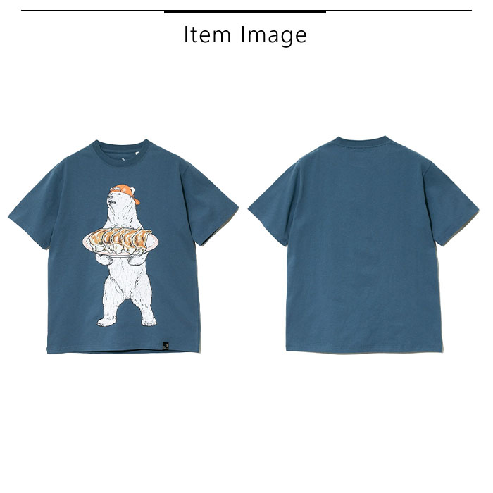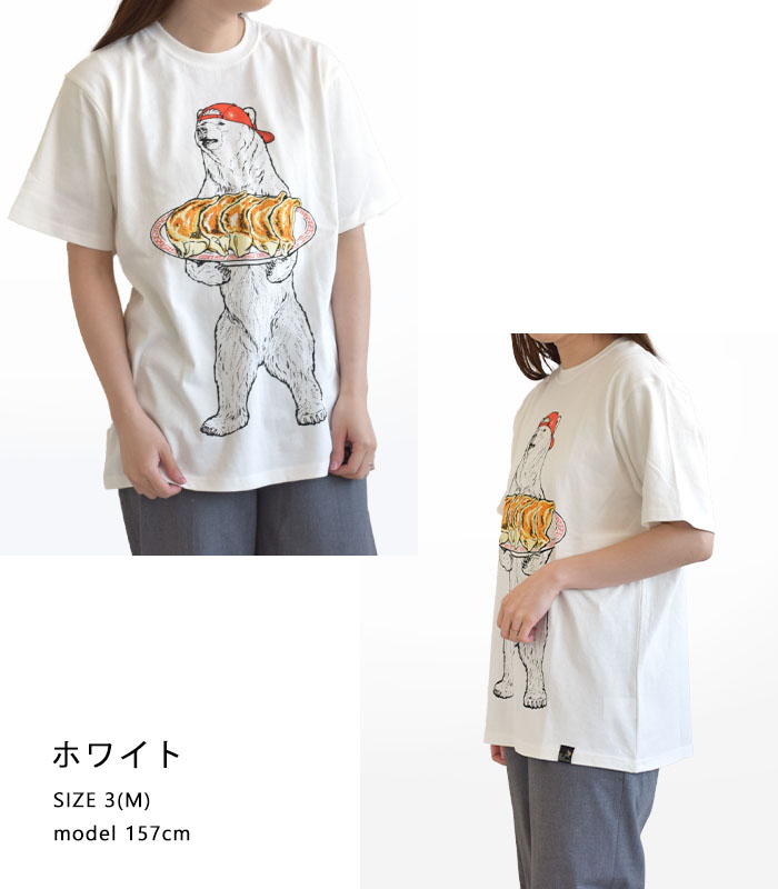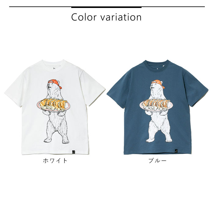 外食欲をそそる美味しそうな焼き色の餃子を持ったクマのベーシックプリントT。中華シリーズクマ待望の春夏アイテムで登場☆