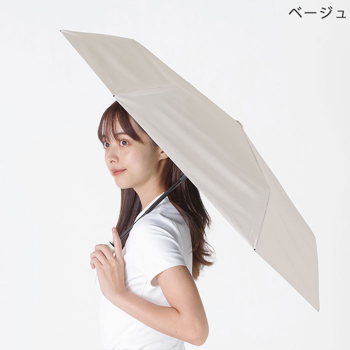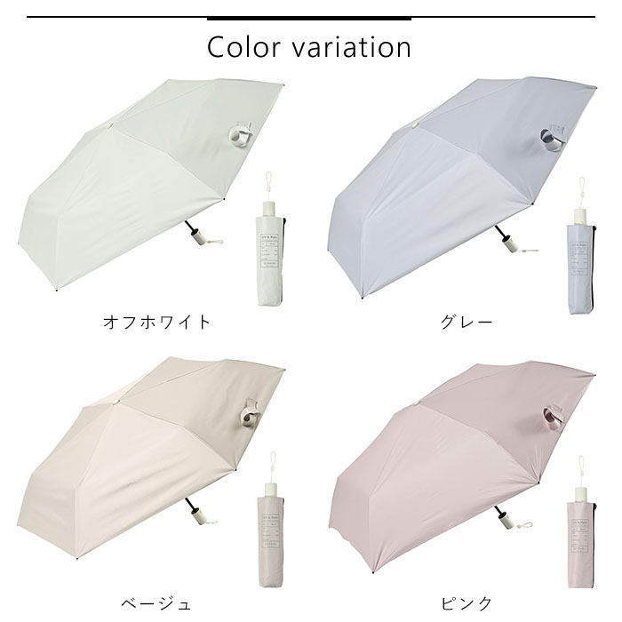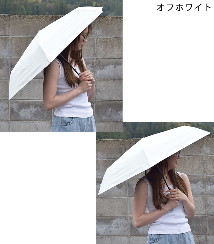 飽きのこないシンプルな無地のデザインは、一年中使える万能デザイン。明るいペールトーンの傘生地にオフホワイトのハンドルがマッチします。裏側のポリウレタン加工の色はブラックになっています。ダークな色は光を吸収し日陰を作る効果があり、強い日差しに最適です。