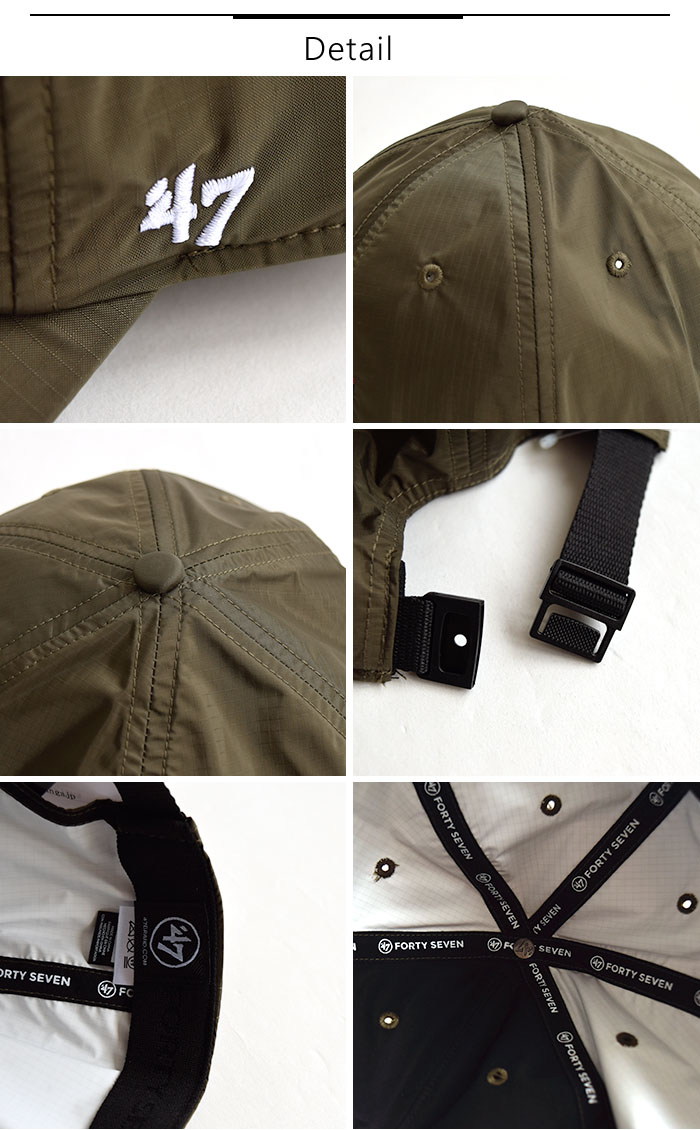 シンプルな6パネルで構成されたクラシカルなデザイン。 アイレットもパネルごとに付属しているので通気性も向上しています。 クラウンを深めにすることで程よいフィット感とかぶり心地がよく、メンズ・レディースの方でもかぶりやすくなっています。 後ろのアジャスターでサイズ調整も可能なので親子兼用でもお使いいただけます。 裏のスベリ(汗止め)とパイピングにはFORTY SEVENのロゴデザインがアクセントに。 防水透湿性素材を使用しているので、アウトドアライフではもちろんのこと軽いアクティビティーでも使いやすく、トーンカラーも落ち着いたカラーで日常でも活躍できるキャップになります。 |