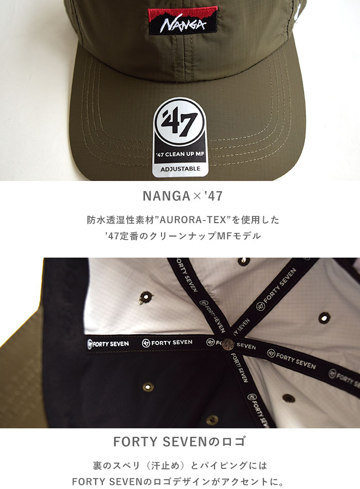 | 商品説明 | AURORA TEX DOWN JACKETのファブリックで使用している防水透湿性素材”AURORA-TEX”を使用した、’47定番のクリーンナップMFモデルをベースとした深めのキャップ。