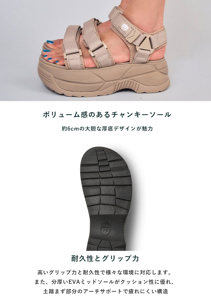 商品説明 ボリューミーなシルエットが大人かわいいデザイン、大好評レディースモデルのチャンキーサンダル。