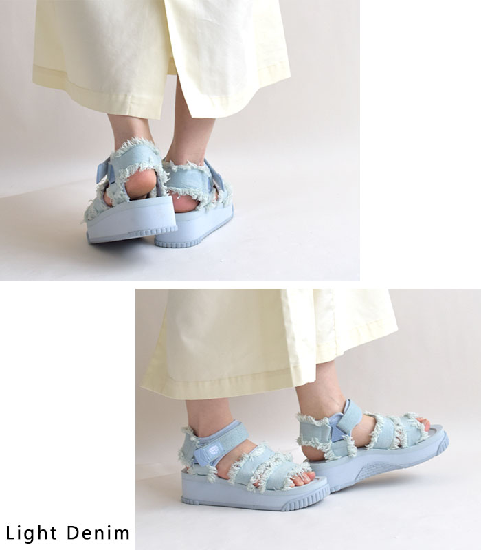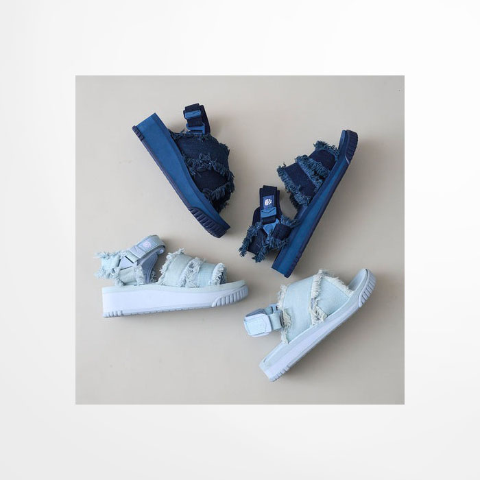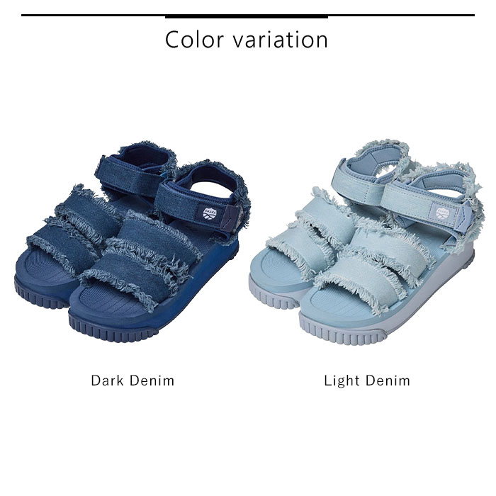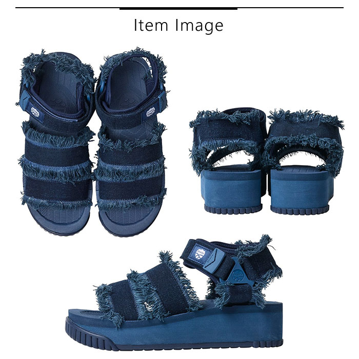 スポーツサンダルの快適さはそのままに、クラッシュデニム素材を採用することで、モード感とボヘミアンテイストを融合したデザインが魅力的なサンダルにアップデート。