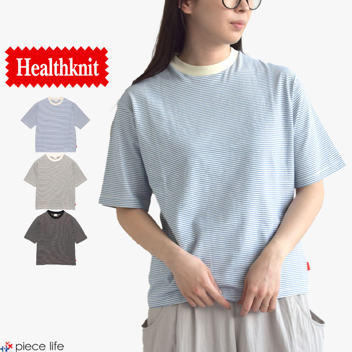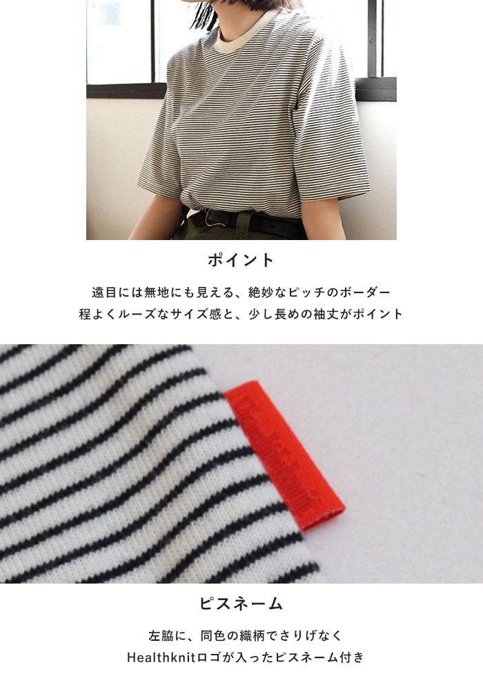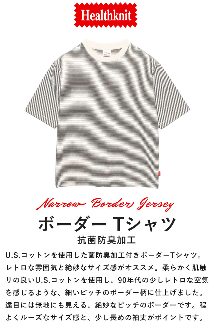 【Healthknit】Tシャツ 半袖 ボーダー ナローボーダー クルーネック