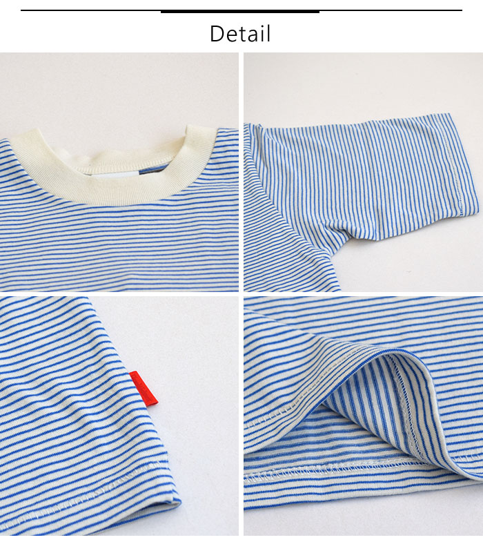 柔らかく肌触りの良いU.S.コットンを使用し、90年代の少しレトロな空気を感じるような、細いピッチのボーダー柄に仕上げました。