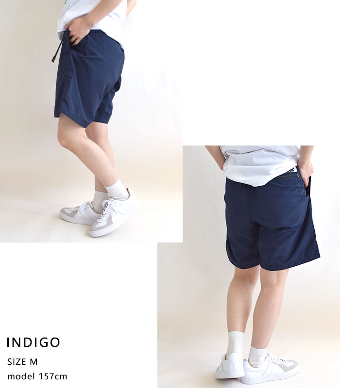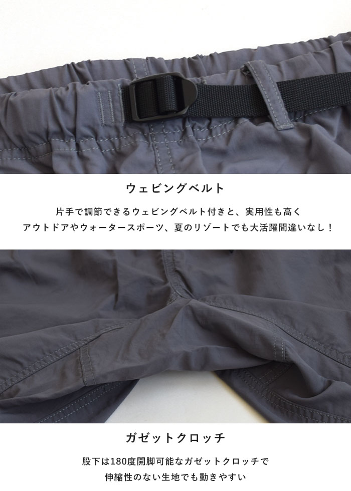 ・耐久撥水(DWR)加工の施されたナイロン素材を使用したパッカブル仕様のショートパンツ