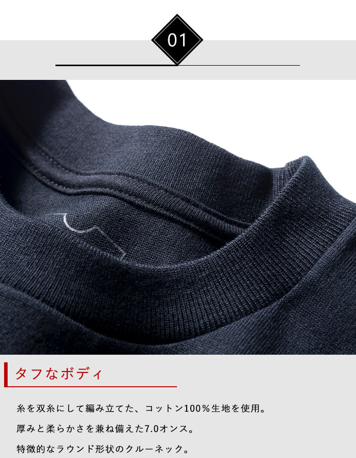 生地は3P-T(3枚入りパックTシャツ)赤ラベルで使用している糸を双糸にして編み立てた