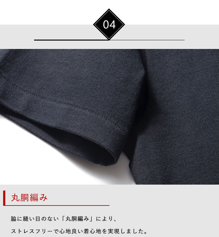 ストレスを軽減する脇に縫い目のない丸胴仕様。