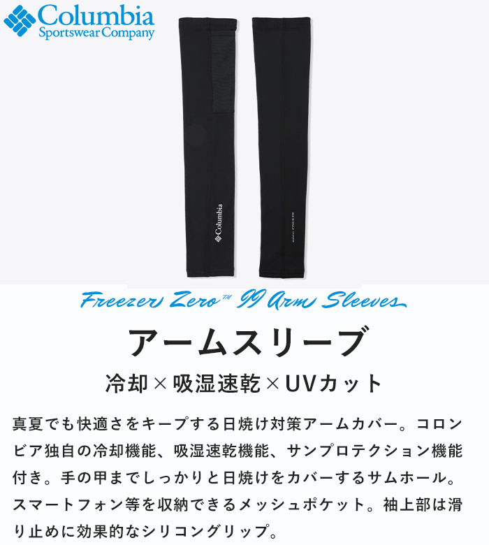 | 商品特徴 | ・コロンビア独自の冷却機能「オムニフリーズゼロ」 ・コロンビア独自の吸湿速乾機能「オムニウィック」 ・コロンビア独自のサンプロテクション機能「オムニシェイド」UPF50 ・腕回りの日焼け対策に効果的なアームカバー ・手の甲までしっかりと日焼けをカバーするサムホール ・スマートフォン等を収納できるメッシュポケット ・袖上部は滑り止めに効果的なシリコングリップ ・低山ハイキングやキャンプなどの夏のアウトドアアクティビティ、日常のガーデニングなどの日焼け対策におすすめ |