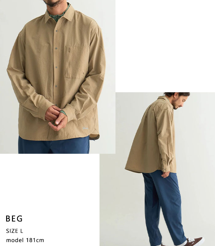 同素材のパンツやショーツと合わせてセットアップでの着用もおすすめ。都会的な抜け感とアウトドアの機能美を兼ね備えた、夏に頼れる1着です。