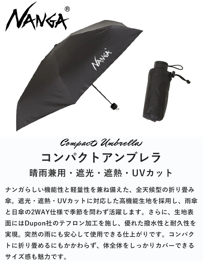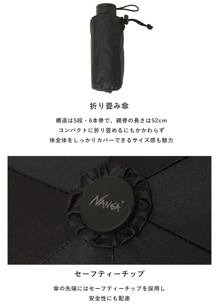 ナンガらしい機能性と軽量性を兼ね備えた、全天候型の折り畳み傘。