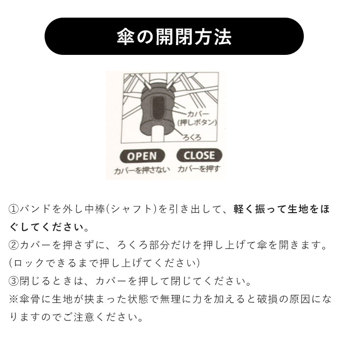 構造は5段・6本骨で、親骨の長さは52cm。コンパクトに折り畳めるにもかかわらず、体全体をしっかりカバーできるサイズ感も魅力です。