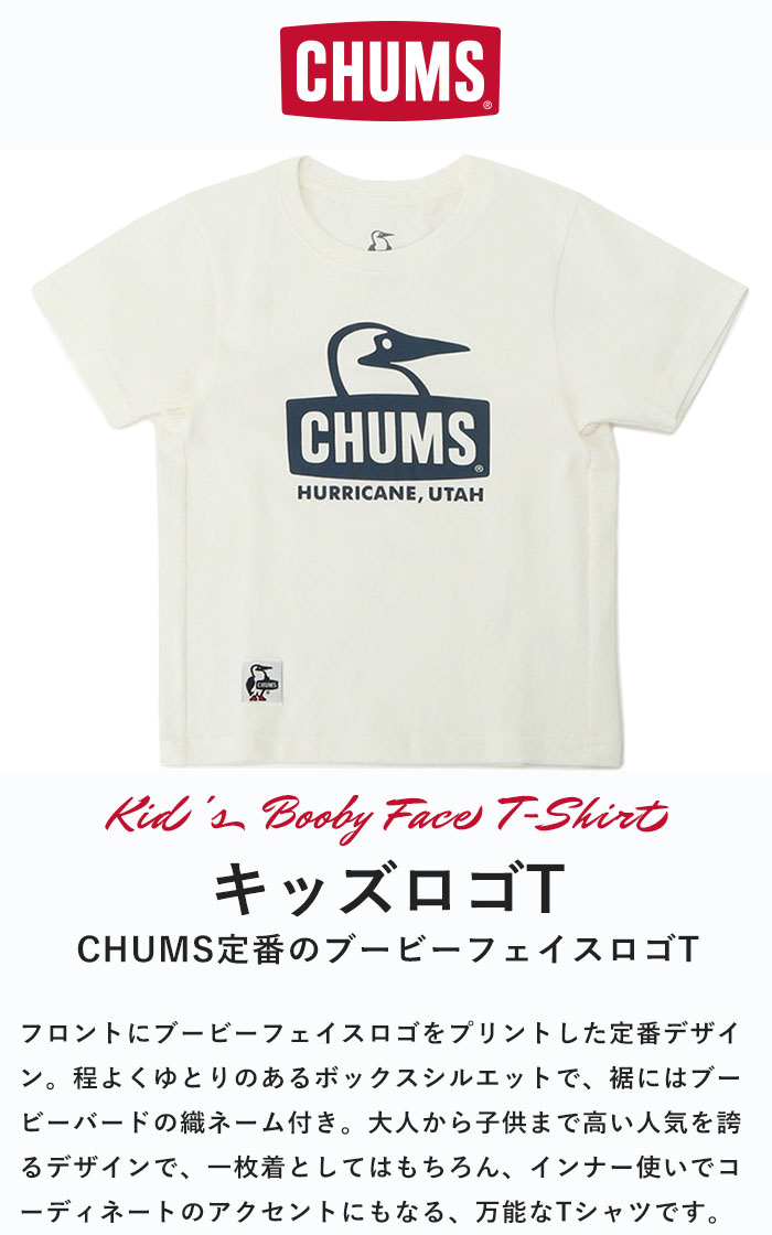 商品説明 大人から子供まで人気のデザイン、CHUMS定番のブービーフェイスロゴTシャツ。