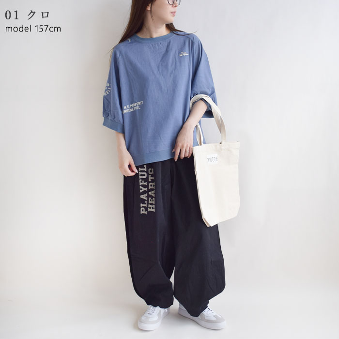 プリントTシャツやフーディと組み合わせて、スポーツテイストを取り入れたコーディネートもおすすめ。