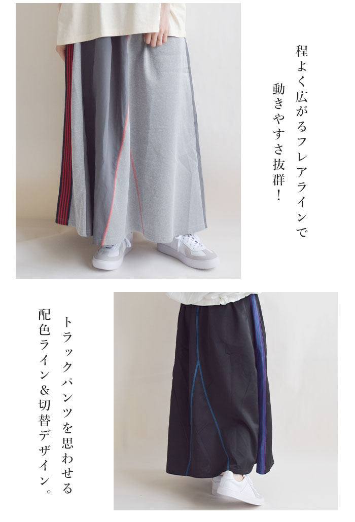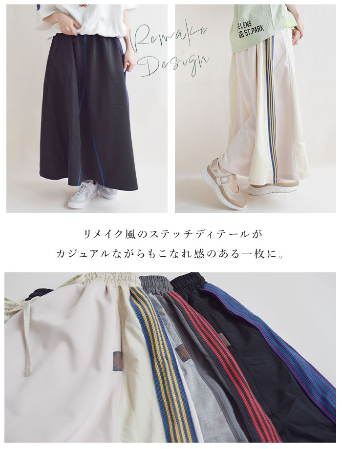 スポーティーなムードを演出するリメイク風トリコットトラックスカートが、デザインをアップデートして登場!