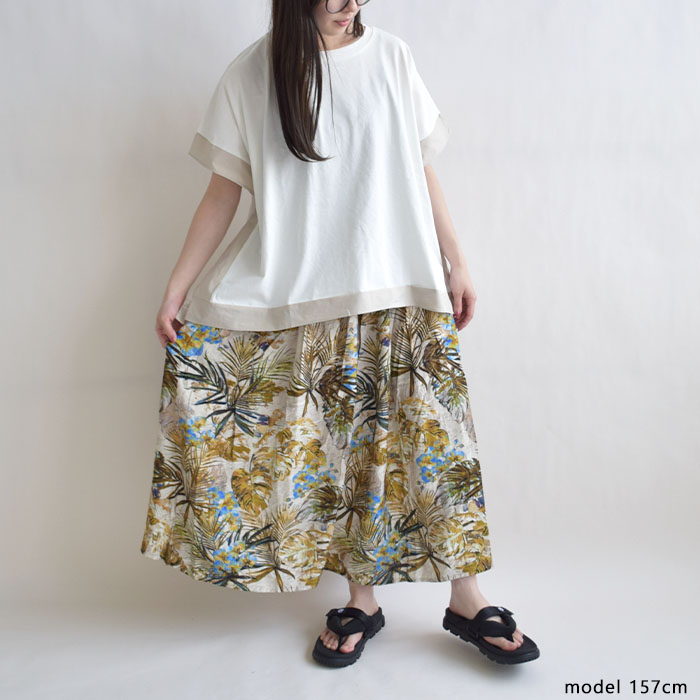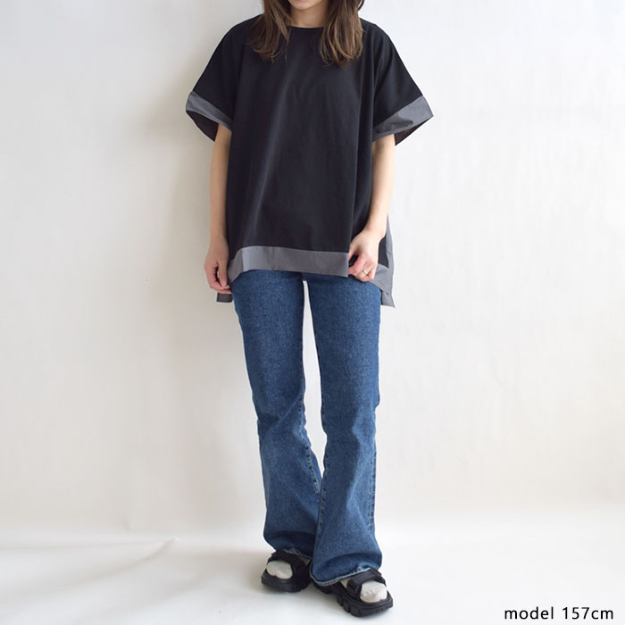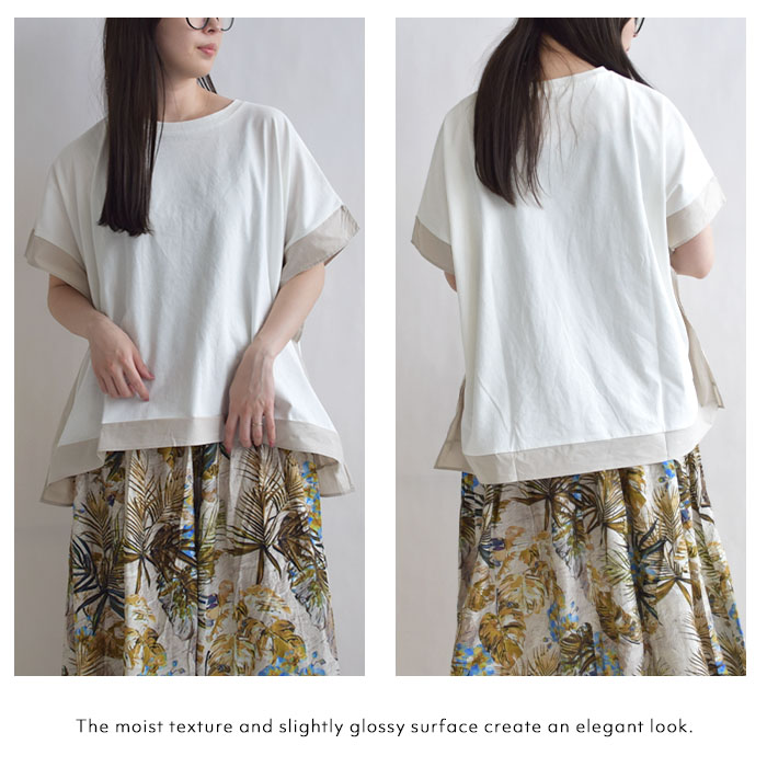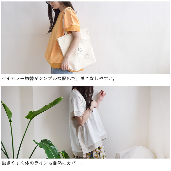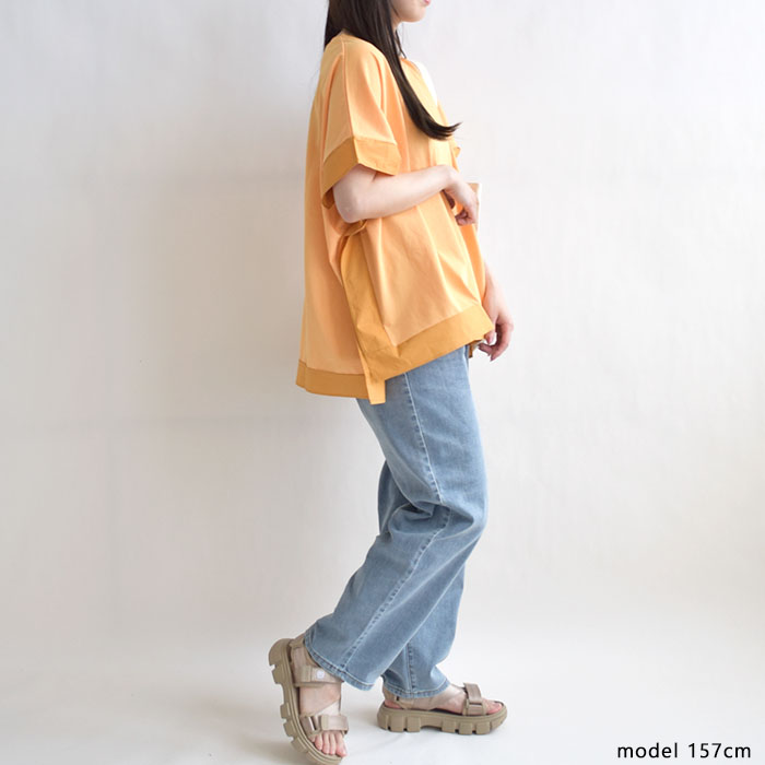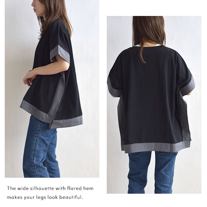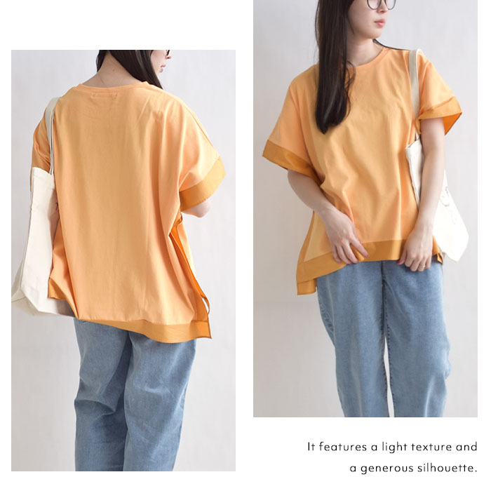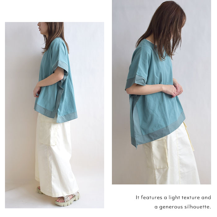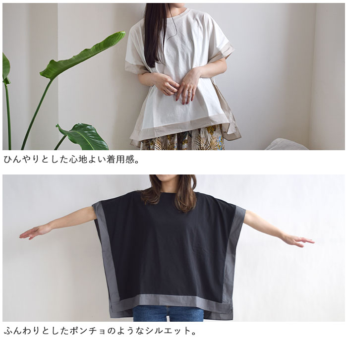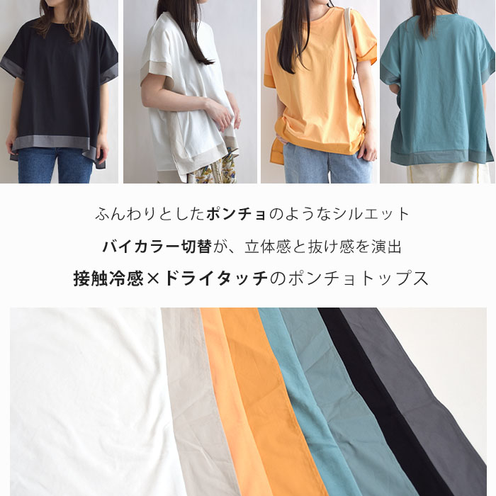 肌離れの良いドライタッチ天竺素材を使用し、ひんやりとした接触冷感の ふんわりとしたポンチョのようなシルエットが特徴で、動きやすく体のラインも ワイドパンツやテーパードパンツとの相性も抜群。デニムでカジュアルに、 |