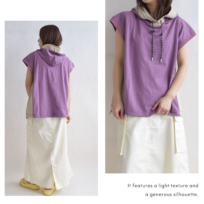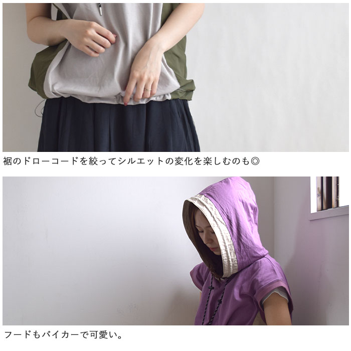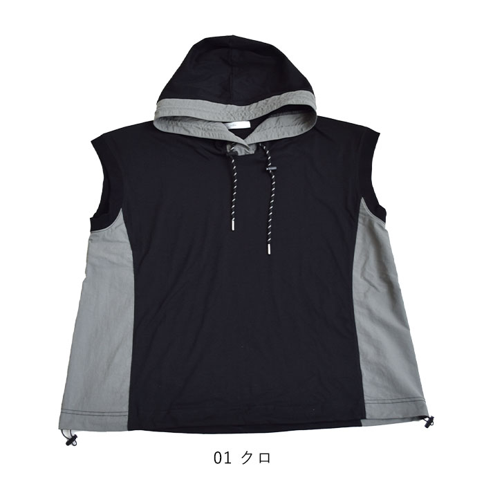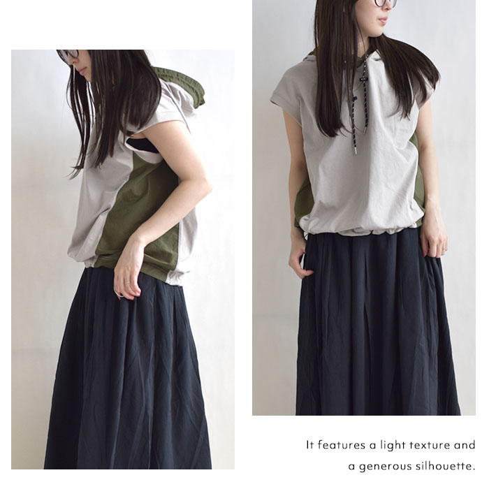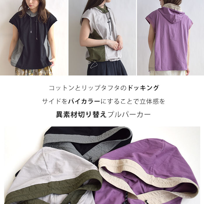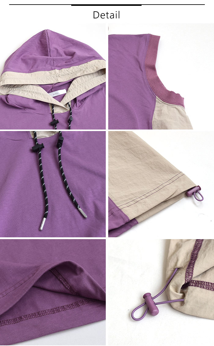 【pu2le 】天竺×ナイロン切替パーカーTシャツ