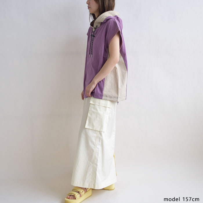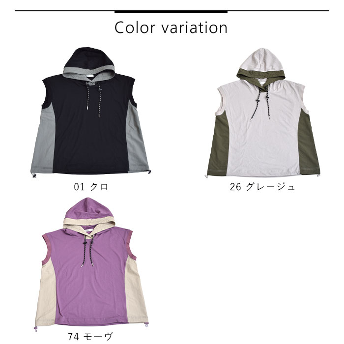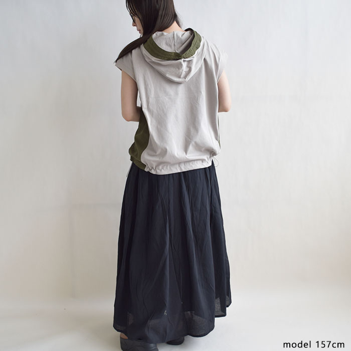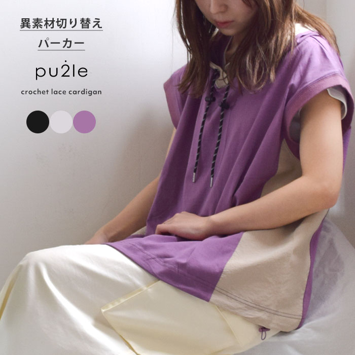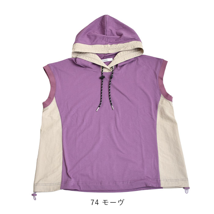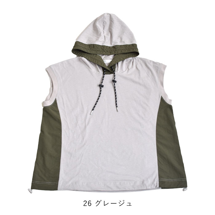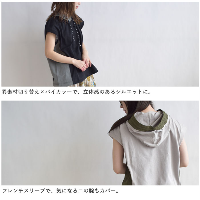 【pu2le 】天竺×ナイロン切替パーカーTシャツ