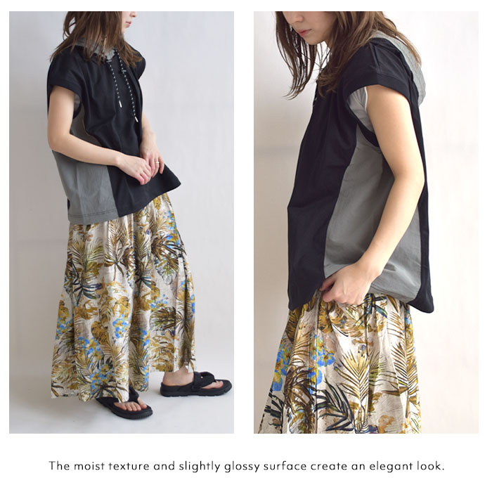 サラッとした薄手の天竺とハリがあるリップタフタのドッキング。